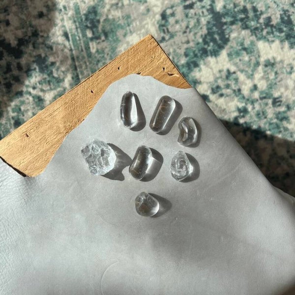 Inhoud: 6 Bergkristal steentjes en een 1 ruwe Bergkristal. Exclusief het starterset met 6 Bergkristal punten en bord, klik om deze te bestellen.